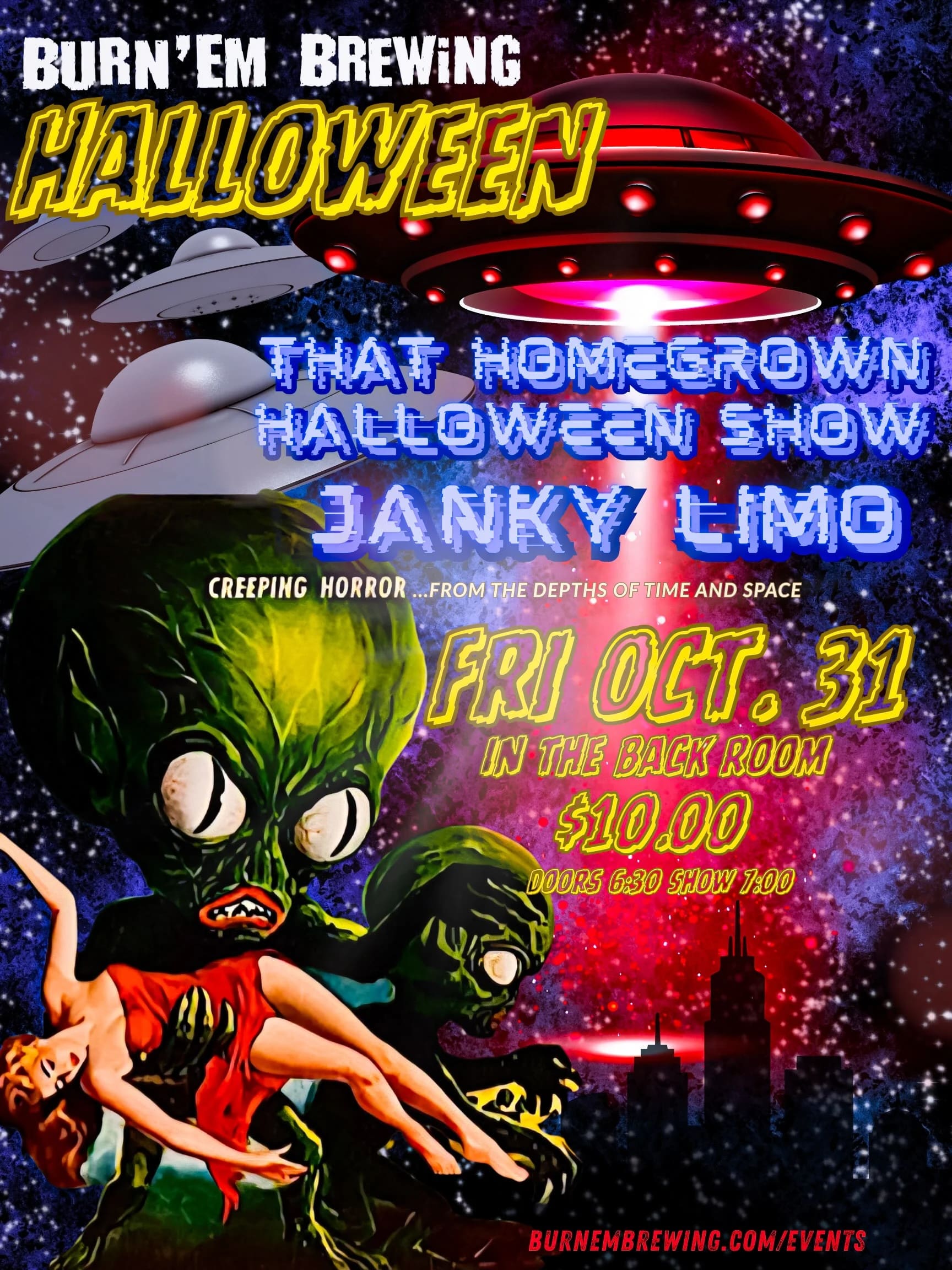 That Homegrown Halloween show is BACK with Janky Limo to rock Halloween at Burn ‘Em!