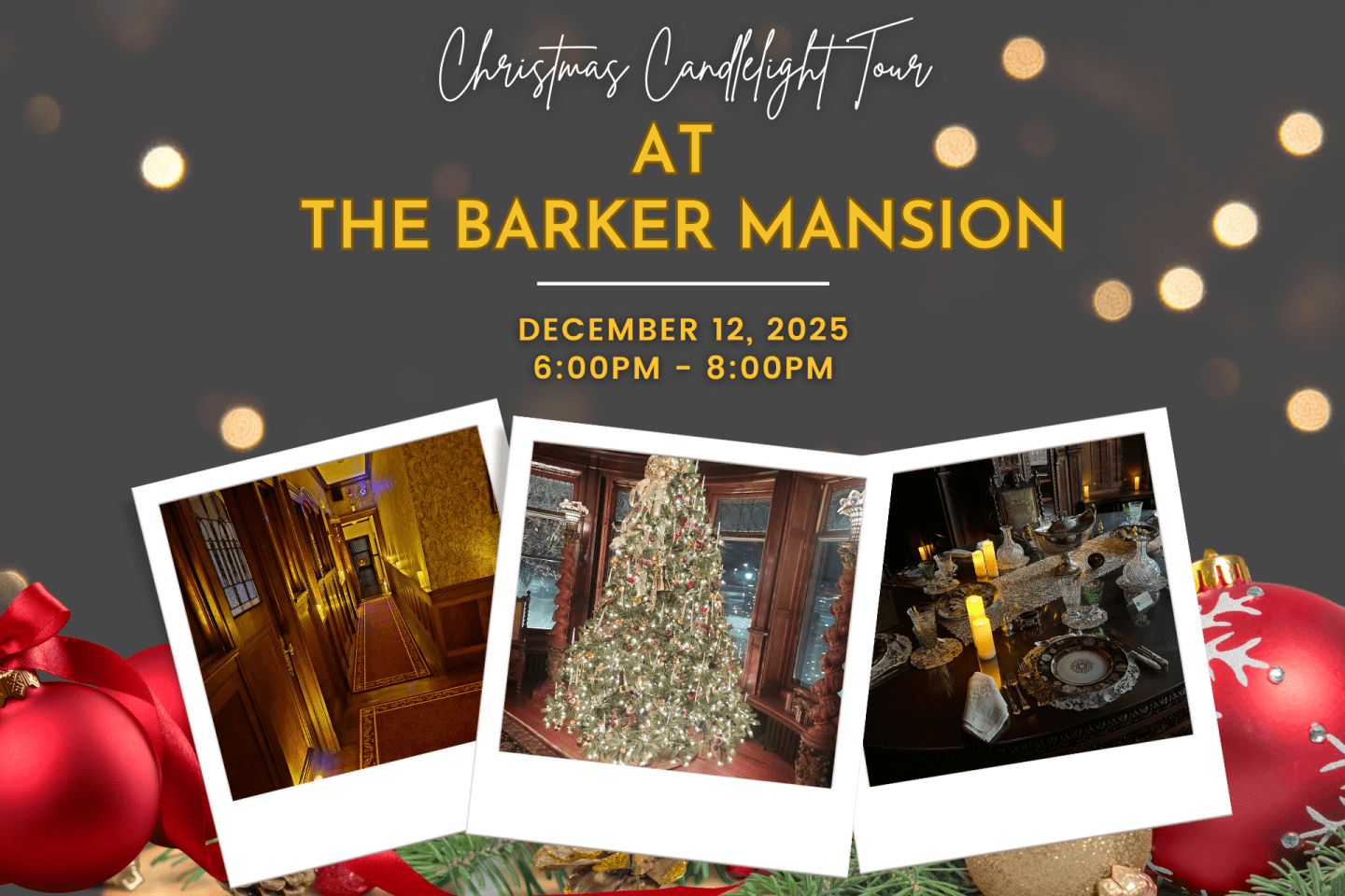 Christmas Candlelight Tour at The Barker Mansion ✨With a picture perfect holiday setting in each room, guests will delight in a candlelight guided tour and end the evening with a Barker Mansion holiday sing-a-long. Don’t miss this Gilded Age holiday celebration, where history comes alive in every detail.