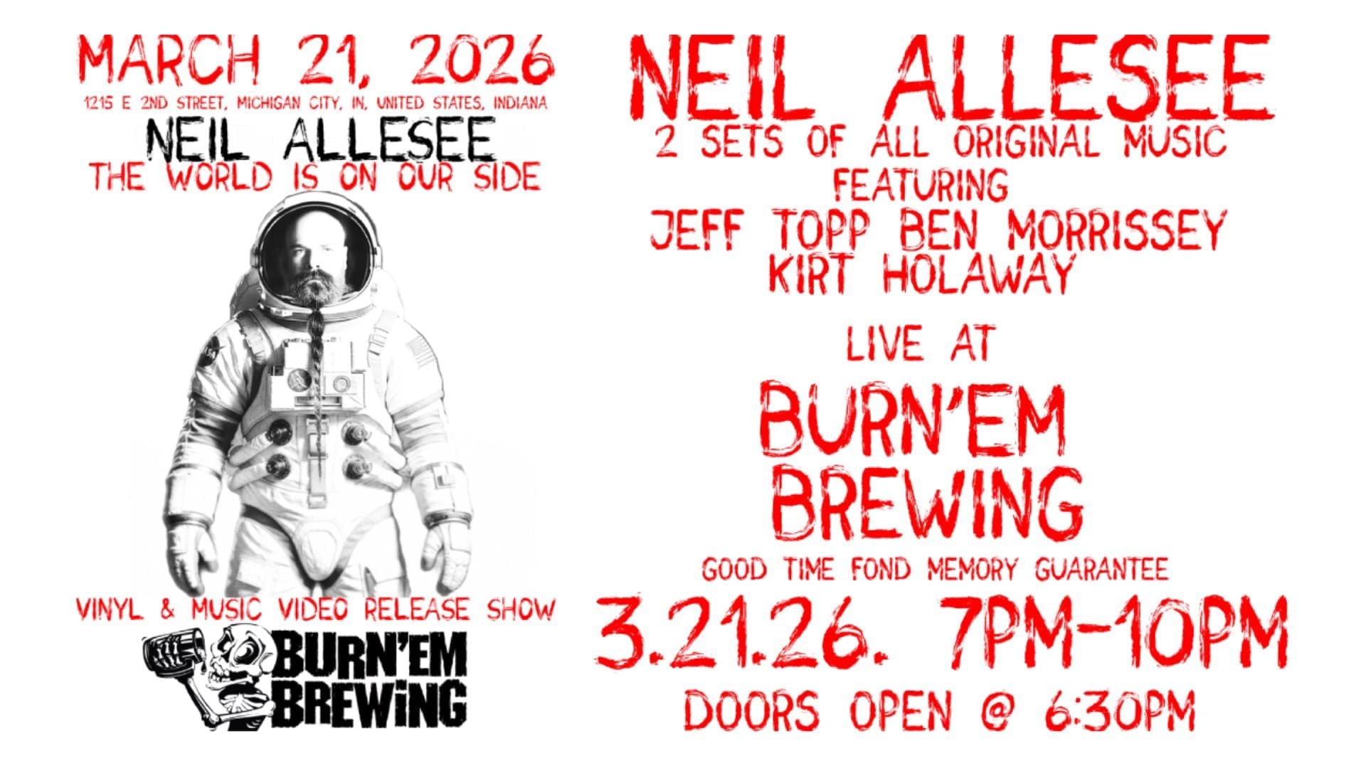 Come celebrate the release of “The World Is On Our Side”! 12 all new songs available on VINYL!! PLUS 2 live sets of originals!