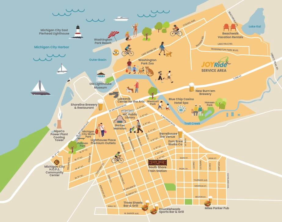 We’re expanding our horizons! See our new extended service area map in Michigan City below! We’ve listened to your feedback about where you’d love to explore and worked hard to make those wishes come true. Our expanded routes will take you to hidden gems and beloved landmarks previously just beyond reach. More places to explore mean more memories to make together! We can’t wait to see your faces light up as you discover these new treasures.