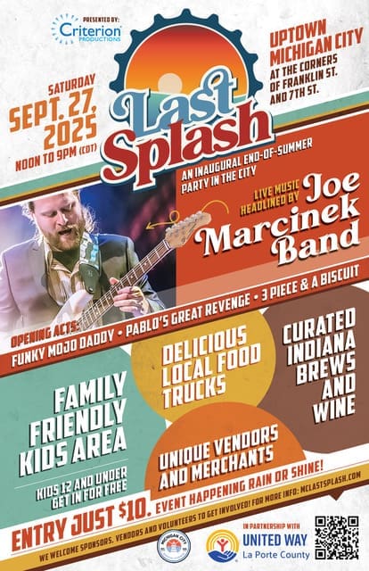 Get ready for Michigan City’s newest festival experience coming in September! The Last Splash will bring live music, local vendors, craft beverages, and family fun to the heart of downtown. We sat down with Colleen Neubauer of Criterion Productions, the festival’s producer and a veteran event organizer with over 20 years of experience producing large-scale events and fundraisers throughout Chicago and Southwest Michigan. Colleen gave JOYRide the inside scoop on this exciting new event for Michigan City!